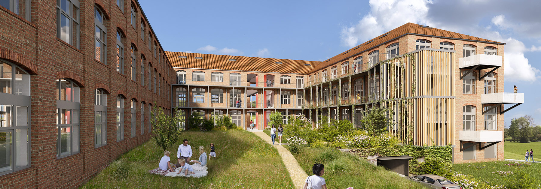 A Beaucourt, la Fabrique offre d’énormes potentiels de lofts sur un ou deux niveaux. Les grandes hauteurs sous-plafond offrent un sentiment d’espace permanent et permettent toutes les audaces. L’aménagement intérieur peut être évolutif. L’ouverture sur un parc peuplé d’arbres centenaires rend le lieu exceptionnel.